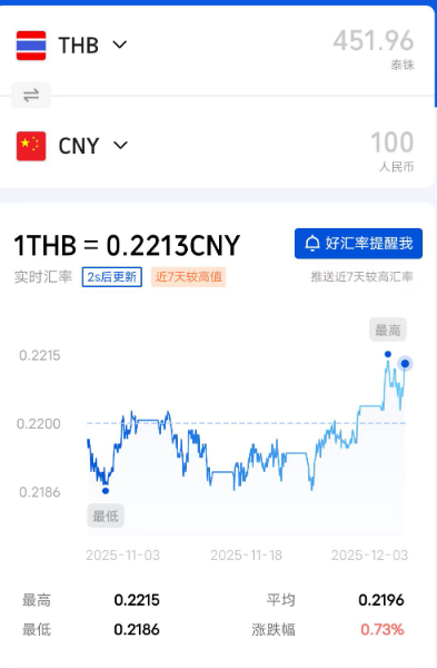 今日人民币泰铢汇率2025/12/3