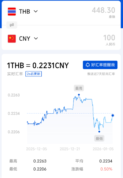 今日人民币泰铢汇率2026/1/5