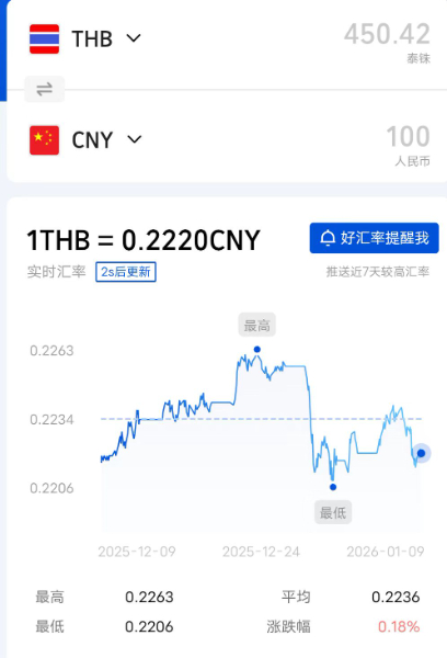 今日人民币泰铢汇率2026/1/8