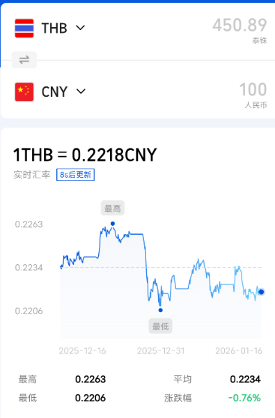 今日人民币泰铢汇率2026/1/16