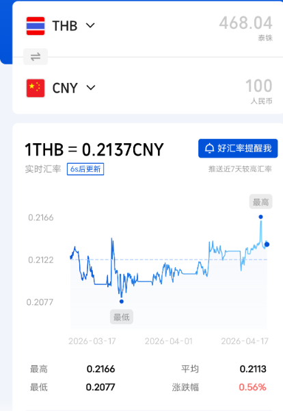 今日人民币泰铢汇率2026/4/17