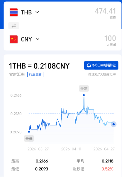 今日人民币泰铢汇率2026/4/29