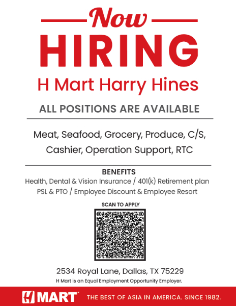 H Mart Harry Hines 诚邀您加入我们的团队