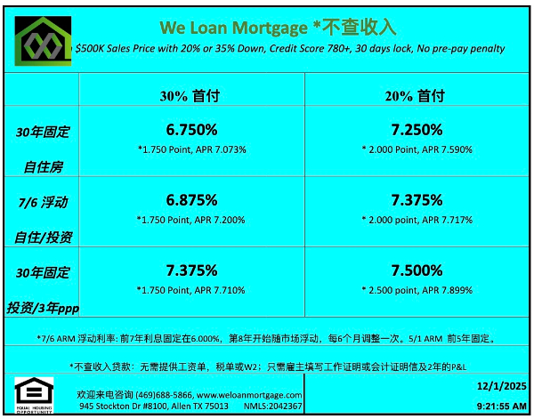 威隆贷款 WLM 今日房屋贷款利率 12/01/2025