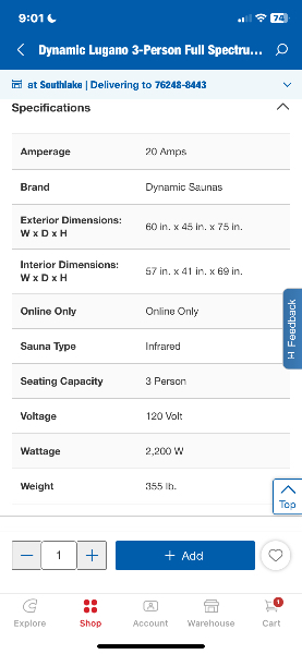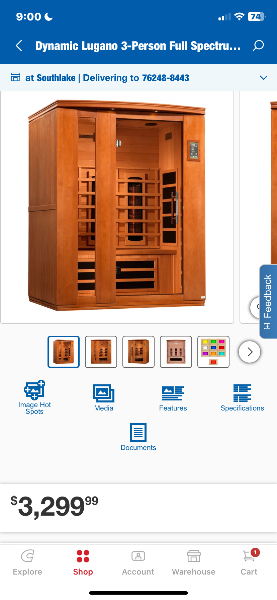 Dynamic Lugano 3 person Full spectrum infrared Sauna $1550 家用桑拿室 买来几乎没怎么用过、取货地点在Keller 联系我时,请说是在58海外看到的,谢谢!
